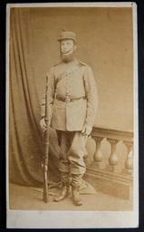 Keywords: carte de visite cartedevisite british rifle volunteer britishriflevolunteer uniform people photo border I have been told by a Facebook contact that this is likely to be a Rifle Volunteer. I think this is one of two images of the same man, this one from a studio in London, the other from Mirfield. Possibly ca 1870s? I have been told by a Facebook contact that this is likely to be a Rifle Volunteer. I think this is one of two images of the same man, this one from a studio in London, the other from Mirfield. Possibly ca 1870s? |