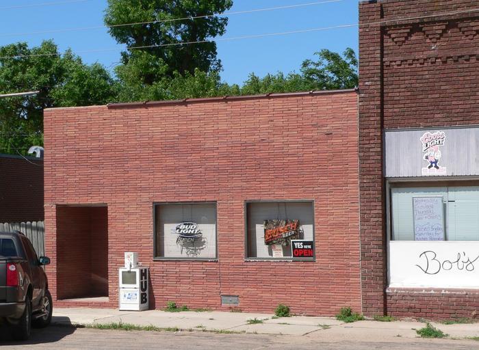 Keywords: Upland, Nebraska Prairie Ave 1.JPG en First in a series of seven photos of the west side of Prairie Avenue beginning north of the post office at Prairie and Midland Street and running north to Railway Street <br> This photo shows part of Bob's Place bar; the wooden fence at left extends from the bar to the post office own Ammodramus 2010-06-23 Pictures by Ammodramus Taken with Panasonic Lumix DMC-FZ20 Upland Nebraska Bars in Nebraska |