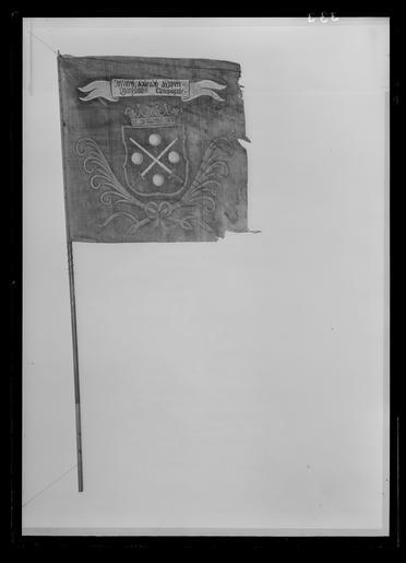 | Keywords: Uppbådsfana för Berghems socken i Marks härad - Livrustkammaren - 8981.tif Duk av enkel blå linnelärft 2 vertikala våder hopsydda med fällsöm i mitten <br/>Stad i vertikala ytterkanten Fållen i över- och underkanten lagd åt dukens insida Dekor Målad lika på båda sidor i mitten i gult en med öppen krona krönt sköld nedtill innefattad av två korsade och med långa tofsprydda band Hopknutna palmkvistar I skölden två korsade svärd med vita klingor och gula fästen följda av fyra i vinklarna ställda vita kulor På det vita inskriptionsbandet Mark härad Wapen //Bärgumbs Compagnie Fäst med 1 rad sexuddiga tennlickor på blått band Har ursprungligen fortsatt 250 ned på stången Stång av trä brunmålad Mässingsförlängning Saknar holk och spets original caption 1710 wood Färg brun material trä - brass size mm 720 våd size mm 1515 size mm 1400 size mm 15 band size mm 705 mässingsförlängning LRK place of origin original filename LN_B01341_004221 53590 inventory number LRK 17036 8981 CC0 Uppbådsfana för Berghems socken i Marks härad - Livrustkammaren - 8981-negative tif <gallery caption Different images of same object > File Uppbådsfana Berghems sn Mark - Livrustkammaren - 34300 tif </gallery> Ensigns Media contributed by LSH unmatched material Media contributed by LSH dim-with multiple size templates Media contributed by LSH 2013-10 |