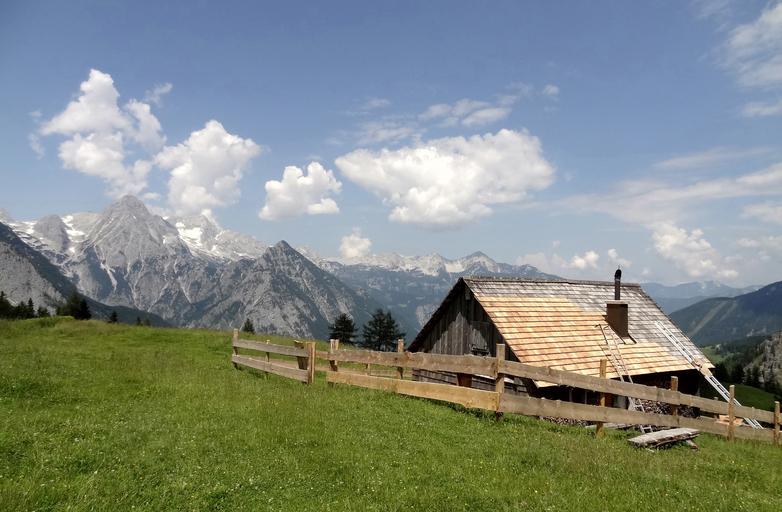 Keywords: upper austria dolomites dough holiday travel landscape panorama mountains summer panoramic views grass alm hut hiking idyllic