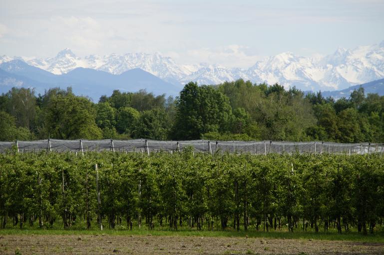 Keywords: upper swabia fruit growing apple trees agriculture mountains alpine panorama landscape vision good view spring