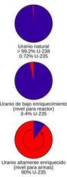 | Keywords: Uranium enrichment proportions es.svg Pie-graphs showing the relative proportions of uranium-238 blue and uranium-235 red at different levels of enrichment Created in Inkscape by User Fastfission 2006-09-13 User Fastfission Fastfission If you want to credit someone credit Wikimedia Commons Otherwise don't credit anyone that's fine by me --Fastfission 15 18 14 April 2008 UTC thumb left 100px Translation possible ValidSVG Created with Inkscape Uranium enrichment | ||||