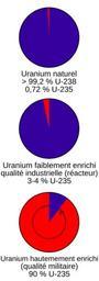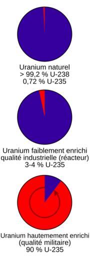 Keywords: Uranium enrichment proportions-fr.svg Created with Inkscape Pie-graphs showing the relative proportions of uranium-238 blue and uranium-235 red at different levels of enrichment Diagrammes camemberts montrant les proportions relatives en uranium 238 bleu et uranium 235 rouge à diverses étapes du processus d'enrichissement Own 2006-09-13 User Fastfission If you want to credit someone credit Wikimedia Commons Otherwise don't credit anyone that's fine by me --Fastfission 15 18 14 April 2008 UTC English version original Swedish version Spanish version Mandarin chinese version Hebrew version Translation possible ValidSVG Fastfission Uranium enrichment ImageNote 1 54 666 122 97 760 2160 2 0 7202 est l'abondance naturelle de l' uranium 235 dans l'uranium naturel ; 0 7112 est la teneur massique en uranium 235 dans l' uranium naturel ImageNoteEnd 1 |