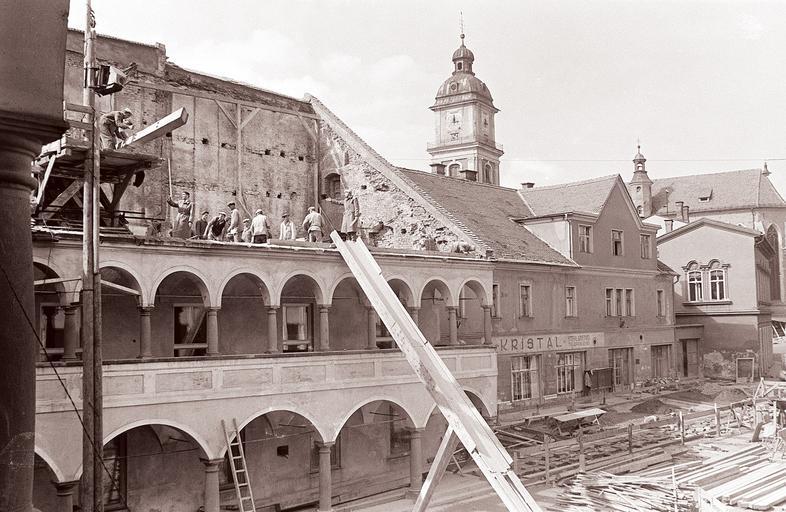 | Keywords: Urejanje Rotovškega trga 1960 (2).jpg Urejanje Rotovškega trga 192212 1960-03-22 creator Jože Gal PD-Slovenia 1960 in Slovenia Historical black and white photographs of Maribor Historical images of Maribor Cathedral Town Hall Square Maribor Construction in Maribor Men at work in Maribor Ladders in Slovenia Arcades in Maribor Photographs by Jože Gal |