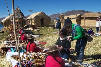 Keywords: Uros vendiendo sus artesanias.jpg Isla flotante de los Uros en el Lago Titicaca La venta de artesanias es una de sus principales fuentes de ingresos Autor Alfredobi Fecha Agosto 2006 2006-08-25 own assumed Alfredobi Uros islands Uros people |