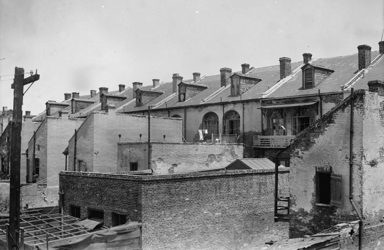 Keywords: Ursuline Row New Orleans from Back 1936.jpg New Orleans Decatur Street French Quarter June 1936 BUILDINGS ON DECATUR STREET BETWEEN URSULINE GOVENOR NICHOLS NORTHWEST ELEVATION REAR VIEW 2 Marked 'E' on Plot Plan - Ursuline's Row Houses 1107-1133 Decatur Street Commercial Buildings New Orleans Orleans Parish LA Note Row of commercial / residential buildings constructed on land on what had been the Decatur Street side of the Ursuline Convent grounds Historic American Buildings Survey photo by Richard Koch via http //hdl loc gov/loc pnp/hhh la0054/photos 072837p ; TIF cropped contrast slightly adjusted and image converted to jpg before uploading to Wikimedia Commons 1936-06 Richard Koch PD-USGov Unmodified TIF File Decatur Street French Quarter 1936 Ursulines Row Houses Street Scene tif 1936 in New Orleans Built in New Orleans in 1830 Decatur Street French Quarter Black and white photographs of the French Quarter Row houses in New Orleans Black and white photographs of buildings |