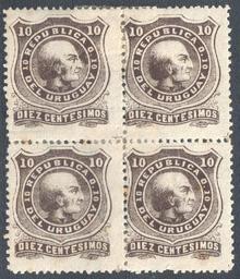 | Keywords: Uruguay 1883 Sc51 B4.jpg en Uruguay 1883 Sc51 unused block of four Catalogue Sc 51 1883 own scan Uruguay post See more images Uruguay 1883 Sc51 jpg Uruguay 1883 bisect jpg Uruguay 1883 Sc51 B4 jpg Uruguay 1883 Sc51 B4 HI jpg Uruguay 1883 Sc51 B4 MP jpg Uruguay 1883 Sc51a B4 jpg LangSwitch Uruguay 10 centesimos brown issue 1883 Scott 51 Depicting José Gervasio Artigas Custom license marker 2016 04 16 PD-Uruguay PD-old-100 Stamps of Uruguay 1883 | ||||