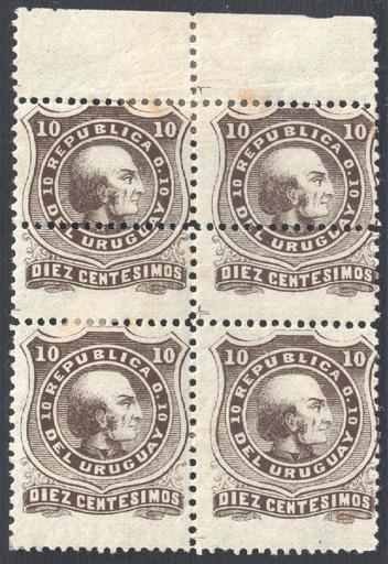 | Keywords: Uruguay 1883 Sc51 B4 MP.jpg en Uruguay 1883 Sc51 unused block of four Upper stamps have double perforation Lower left stamps shows plate error white dot between '10' and 'REPUBLICA' Catalogue Sc 51 1883 own scan Uruguay post See more images Uruguay 1883 Sc51 jpg Uruguay 1883 bisect jpg Uruguay 1883 Sc51 B4 jpg Uruguay 1883 Sc51 B4 HI jpg Uruguay 1883 Sc51 B4 MP jpg Uruguay 1883 Sc51a B4 jpg LangSwitch Uruguay 10 centesimos brown issue 1883 Scott 51 Depicting José Gervasio Artigas Custom license marker 2016 04 16 PD-Uruguay PD-old-100 Stamps of Uruguay 1883 Stamp perforation errors ImageNote 1 208 2324 101 107 2320 3371 2 White dot plate error ImageNoteEnd 1 Uncatalogued stamp oddities and errors |