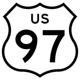 Keywords: US 97 (CA).svg 24 in by 24 in 610 mm by 610 mm California-style U S Route shield made to the specifications of the http //www dot ca gov/hq/traffops/signtech/signdel/specs/G26-2 pdf 2002 edition of Standard Highway Signs with 10 in 250 mm numerals Uses the http //www triskele com/fonts/index html Roadgeek fonts United States law does not permit the copyrighting of typeface designs and the fonts are meant to be copies of a U S Government-produced work anyway own SPUI spuiother Diagrams of California US route shields 097 SVG road signs in California 097 U S Route 97 in California 97 number 1961 cutout U S Highway shields 097 |