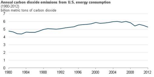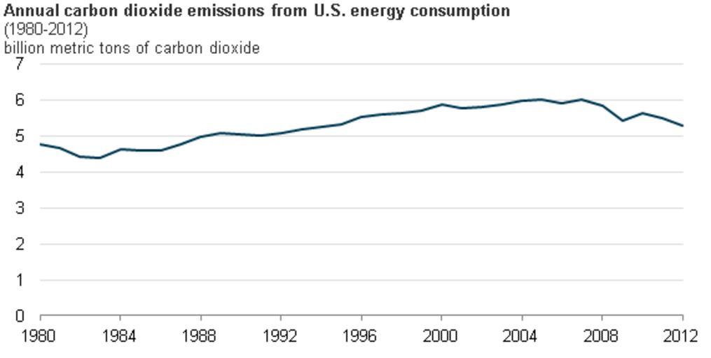 Keywords: US CO2 Emissions 1980-2012.png en US energy-related carbon dioxide emissions 1980-2012 2013-04-16 12 00 56 http //www eia gov/todayinenergy/detail cfm id 10691 US Energy Information Administration PD-USGov Uploaded with UploadWizard Greenhouse emissions graph |