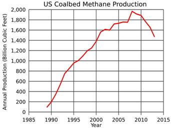 Keywords: US Coalbed Methane Production.svg translate yes en United States coalbed methane production from 1989 to 2013 Data from http //www eia gov/dnav/ng/ng_prod_coalbed_s1_a htm EIA gaz de couche aux États-Unis ; augmentation régulière de 1990 à 2008 et déclin de 2008 à 2013 2014-12-18 own Delphi234 other versions cc-zero Uploaded with UploadWizard Coalbed methane |