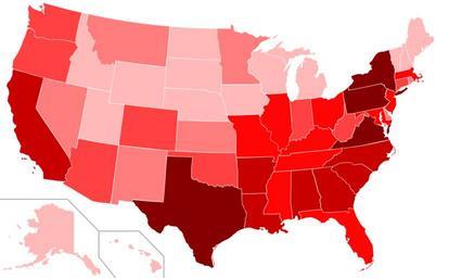 Keywords: US Execution numbers by state since 1608.svg 870000 More than 1000 executions c80000 501-1000 executions ff0505 251-500 executions ff4141 101-250 executions ff7d7d 51-100 executions ffb9b9 1-10 executions own Ibagli 2010-05-20 Death penalty maps of the United States SVG maps of the United States