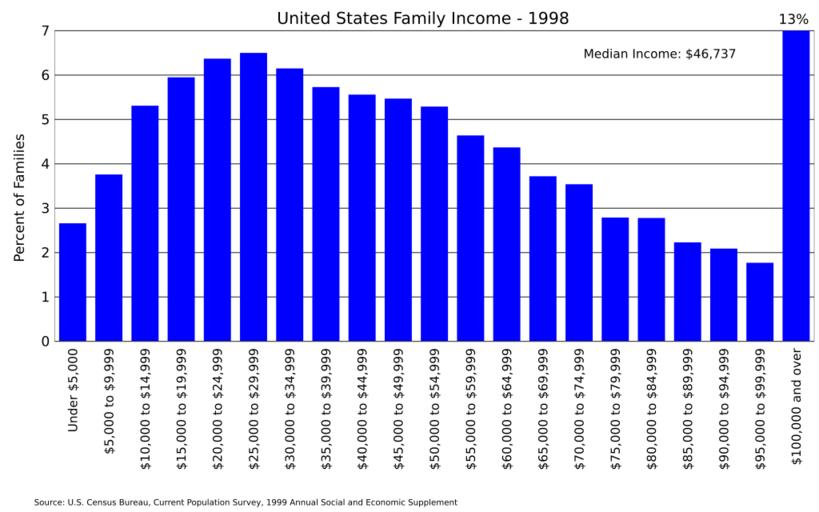 | Keywords: US family income 1998.svg en United States family income distribution for 1998 Data from US Census https //www census gov/data/tables/time-series/demo/income-poverty/cps-finc/finc-01 html FINC-01 2016-06-16 own Delphi234 other versions cc-zero Income distribution in the United States |