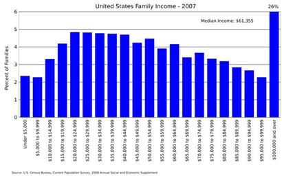 | Keywords: US family income 2007.svg en United States family income distribution for 2007 Data from US Census https //www census gov/data/tables/time-series/demo/income-poverty/cps-finc/finc-01 html FINC-01 2016-06-16 own Delphi234 other versions cc-zero Income distribution in the United States |