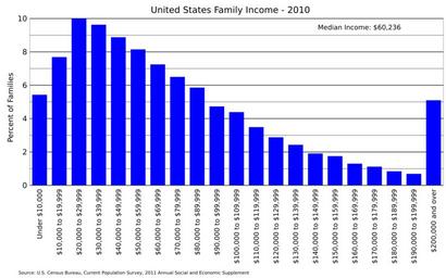 | Keywords: US family income 2010.svg en United States family income distribution for 2010 Data from US Census https //www census gov/data/tables/time-series/demo/income-poverty/cps-finc/finc-01 html FINC-01 2016-06-16 own Delphi234 other versions cc-zero Income distribution in the United States |