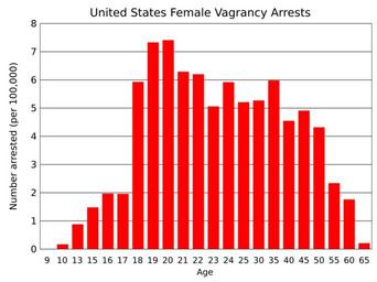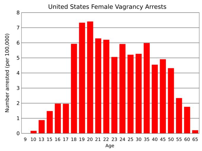 Keywords: US female arrests for vagrancy by age.svg translate yes en Arrests in the United States of females for vagrancy in 2014 by age Data from https //www fbi gov/about-us/cjis/ucr/crime-in-the-u s/2014/crime-in-the-u s -2014/tables/table-40 UCR 2016-05-25 own Delphi234 other versions cc-zero Arrest statistics for the United States SVG bar charts Histograms |
