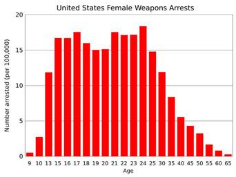 Keywords: US female arrests for weapons by age.svg translate yes en Arrests in the United States of females for weapons in 2014 by age Data from https //www fbi gov/about-us/cjis/ucr/crime-in-the-u s/2014/crime-in-the-u s -2014/tables/table-40 UCR 2016-05-25 own Delphi234 other versions cc-zero Arrest statistics for the United States SVG bar charts Histograms |