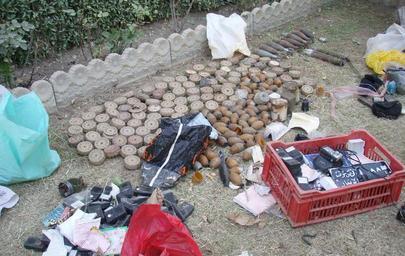 Keywords: US, Iraqi troops uncover largest cache to date in Yarmouk DVIDS47467.jpg en A weapons cache found June 13 2007 contained 113 land mines 63 grenades three rockets three mortars two gas masks five washing machine timers more than 2000 rounds of AK-47 ammunition and seven boxes of various electronics and other assorted explosives It is the largest weapons cache discovery by either U S or Iraqi forces to date in the western Baghdad neighborhood of Yarmouk US Army photo by 1st Lt Patrick Henson 2nd Battalion 32nd Field Artillery Regiment 2007-06-18 https //www dvidshub net/image/47467 47467 2007-06-18 11 35 BAGHDAD IQ PD-USGov Gas masks Images from DoD uploaded by Fæ |