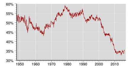 Keywords: US Labor Participation Rate 16-19.svg en Graph of US Civilian Labor Participaton Rate for 16 to 19 year old's from 1948 to 2016 Data from http //data bls gov/timeseries/LNS11300012 BLS 2016-04-05 own Delphi234 other versions Generated with Wikimedia SVG Chart SVG Chart/box cc-zero Labor in the United States Employment statistics for the United States |