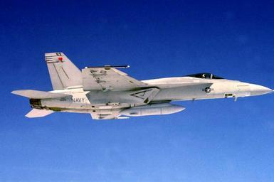 Keywords: US Navy 020000-N-XXXXH-001 F-A-18E Super Hornet with SHARP Pod attached.jpg en Patuxent River MD -- File photo of an F/A-18E Super Hornet outfitted with a Shared Reconnaissance Pod SHARP carried under the aircraft at its centerline Designed and developed by Raytheon for the U S Navy to support advanced day and night all-weather tactical reconnaissance missions The system is scheduled for full deployment aboard the aircraft carrier USS Nimitz CVN 68 in 2003 SHARP will replace an existing system used to provide tactical air reconnaissance for U S Navy carrier-based air wings currently supported by the older F-14 Tomcat fighter aircraft U S Navy photo by Randy Hepp RELEASED 020000-N-XXXXH-001 Navy http //www navy mil/view_image asp id 1809 U S Navy photo by Randy Hepp PD-USGov-Military-Navy F/A-18E Super Hornet in flight Shared Reconnaissance Pod SHARP |