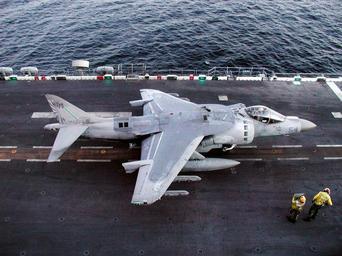 | Keywords: US Navy 020212-N-2383B-506 AV-8B.jpg en 020212-N-2383B-506 At sea aboard USS Bataan LHD 5 Feb 12 2002 -- A U S Marine Corps AV-8B Harrier assigned to the Blue Knights of Marine Helicopter Medium Squadron 365 HMM-365 prepares for launch Bataan and elements of the 26th Marine Expeditionary Unit MEU Special Operations Capable SOC were conducting missions in support of Operation Enduring Freedom 2002-02-12 020212-N-2383B-506 Navy http //www navy mil/view_image asp id 810 U S Navy photo by Chief Photographer's Mate Johnny Bivera PD-USGov-Military-Navy AV-8B Harrier II US Marine Corps Aboard USS Bataan LHD-5 VMM-365 February 2002 photographs |