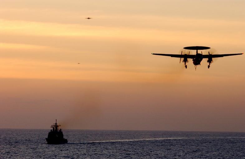 | Keywords: US Navy 020223-N-2722F-021 Aircraft return to ship.jpg en 020223-N-2722F-021 At sea aboard the aircraft carrier USS John C Stennis CVN 74 Feb 22 2002 -- The U S Navy guided-missile cruiser USS Port Royal CG 73 operates as the ship s plane guard astern of the ships flight deck as an E-2C Hawkeye and other aircraft assigned to Carrier Air Wing Nine CVW-9 line-up as they prepare to make arrested landings aboard ship John C Stennis its battle group are conducting combat missions over Afghanistan in support of Operation Enduring Freedom U S Navy photo by Photographer's Mate 2nd Class James Farrally II RELEASED 2002-02-22 020223-N-2722F-021 Navy http //www navy mil/view_image asp id 854 U S Navy photo by Photographer's Mate 2nd Class James Farrally II PD-USGov-Military-Navy 22 February February 2002 in the United States February 2002 photographs Aboard USS John C Stennis CVN-74 Northrop Grumman E-2C Hawkeye aircraft carrier landings War in Afghanistan 2001-present related operations outside of Afghanistan Operation Enduring Freedom in 2002 Aircraft at sunset |