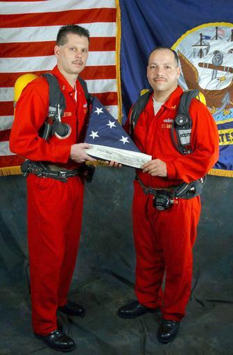 | Keywords: US Navy 020321-N-6626D-502 USS Roosevelt - Ground Zero Flag.jpg en At sea aboard USS Theodore Roosevelt CVN 71 Mar 21 2002 -- USS Theodore Roosevelt's Fire Marshal Chief Warrant Officer James Littleton left from Shady Side OH and Chief Warrant Officer Samuel Perez from Brooklyn NY stand proudly with one of the American flags raised at ground zero after the September 11th attacks on the World Trade Center Theodore Roosevelt and her embarked carrier air wing are operating in the Atlantic Ocean after completing missions in support of Operation Enduring Freedom U S Navy photo by Photographer s Mate 3rd Class Amy DelaTorres RELEASED 2002-03-21 020321-N-6626D-502 Navy http //www navy mil/view_image asp id 1095 U S Navy photo by Photographer s Mate 3rd Class Amy DelaTorres PD-USGov-Military-Navy Aboard USS Theodore Roosevelt CVN-71 March 2002 photographs March 2002 in the United States Military people in 2002 Operation Enduring Freedom in 2002 Sailors at sea Male soldiers Red clothing male 21 March Military people with a flag of the United States Personality rights |