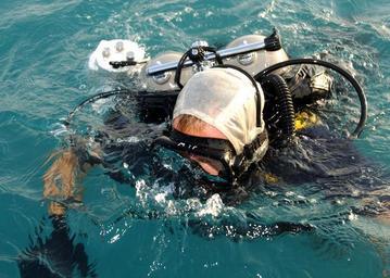 | Keywords: US Navy 020627-N-5329L-003 Diver returns from mission in the Arabian Gulf region.jpg en Arabian Gulf Jun 27 2002 -- Aviation Boatswain s Mate 1st Class Joey Whitmoyer assigned to Explosive Ordnance Disposal Mobile Unit Six Detachment Twelve EODMU-6 surfaces from a ninety foot dive in the North Arabian Gulf Elements of EODMU-6 is embarked aboard the U S Navy mine countermeasure ship USS Dextrous MCM 13 conducting mine counter measure exercises in the North Arabian Gulf in support of Operation Enduring Freedom and Operation Southern Watch U S Navy photo by Photographer s Mate 2nd Class Eric Lippmann RELEASED 2002-06-27 020627-N-5329L-003 Navy http //www navy mil/view_image asp id 1823 U S Navy photo by Photographer s Mate 2nd Class Eric Lippmann PD-USGov-Military-Navy USS Dextrous MCM-13 Explosive Ordnance Disposal Mobile Unit 6 Scuba diving Photographs taken on 2002-06-27 |