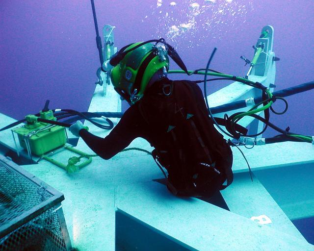 Keywords: US Navy 020717-N-0331L-004 Monitor salvage and recovery.jpg en Atlantic Ocean Jul 17 2002 -- Navy diver Hull Maintenance Technician 1st Class Steve Grier works on extending a piece of equipment called the spider which is being used to raise the gun turret of the sunken Civil War ironclad USS Monitor The famed warship sank during a storm Dec 31 1862 off Cape Hatteras N C as she was being towed to Beaufort S C Four officers and 12 men were lost with the ship Monitor was located in 1973 sixteen miles off the Cape by a team of scientists The site was designated as the nation's first marine sanctuary in 1975 U S Navy photo by Photographer s Mate 3rd Class Jeffrey Lehrberg RELEASED 2002-07-17 020717-N-0331L-004 Navy http //www navy mil/view_image asp id 1959 U S Navy photo by Photographer s Mate 3rd Class Jeffrey Lehrberg PD-USGov-Military-Navy Images from US Navy ship USS Monitor The famed warship sank during a storm Dec 31 1862 off Cape Hatteras N C as she was being towed to Beaufort S C Four officers and 12 men were lost with the ship Monitor was located in 1973 sixteen miles off the Cape by a team of scientists The site was designated as the nation's first marine sanctuary in 1975 U S Navy photo by Photographer ™s Mate 3rd Class Jeffrey Lehrberg RELEASED Hull Maintenance Technician United States Navy USS Monitor ship 1862 Underwater archaeology Underwater photographs of surface supplied divers Underwater work |