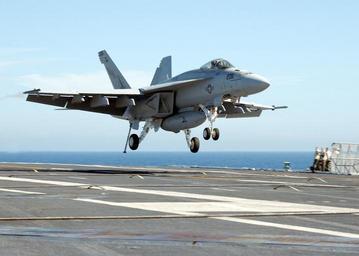 Keywords: US Navy 020724-N-8794V-001 Maiden combat deployment of the F-A-18E Super Hornet.jpg en At sea aboard USS Abraham Lincoln CVN 72 Jul 24 2002 -- An F/A-18E Super Hornet from the Eagles of Strike Fighter Squadron One One Five VFA-115 piloted by Lt Corey L Pritchard makes the first carrier arrested landing of the Super Hornet signifying the start of its maiden combat deployment VFA-115 is assigned to Carrier Air Wing One Four CVW-14 The F/A18-E Super Hornet is an evolutionary upgrade of the combat-proven F/A18-C and D models and is fully capable to conduct both air-to-air and air-to-ground combat missions This includes air superiority day and night strike with precision-guided weapons fighter-escort and close air support suppression of enemy air defenses reconnaissance forward air control and refueling The Super Hornet has greater range and endurance can carry a heavier payload has enhanced survivability and a built-in potential to incorporate future systems and technologies The Abraham Lincoln battle group deployed on July 20 2002 and will be conducting missions in support of Operation Enduring Freedom and Southern Watch U S Navy photo by Photographer's Mate 3rd Class Kittie VandenBosch RELEASED 2002-07-24 020724-N-8794V-001 Navy http //www navy mil/view_image asp id 2126 U S Navy photo by Photographer's Mate 3rd Class Kittie VandenBosch PD-USGov-Military-Navy Aboard USS Abraham Lincoln CVN-72 F/A-18E Super Hornet in flight F/A-18 Hornet aircraft carrier landings 2002 in aviation July 2002 photographs Strike Fighter Squadron 115 United States Navy |