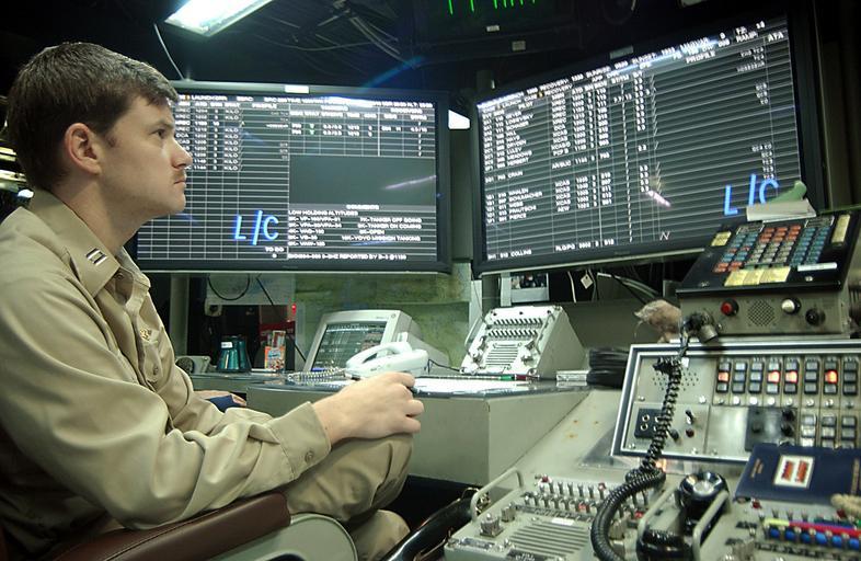| Keywords: US Navy 020801-N-7871M-001 Lt. Zinser monitors aircraft operation in the Ship's Carrier Air Traffic Control Center (CATCC).jpg en At sea aboard USS George Washington CVN 73 Aug 1 2002 -- Lt Mark Zinser from San Diego Calif uses the aircraft carrier's integrated shipboard information system to monitor aircraft operating in the area while standing watch in the Carrier Air Traffic Control Center CATCC Washington and Carrier Air Wing One Seven CVW-17 are on a regularly scheduled deployment conducting combat missions in support of Operation Enduring Freedom U S Navy photo by Photographer's Mate Airman Andrew Morrow RELEASED 2002-08-01 020801-N-7871M-001 Navy http //www navy mil/view_image asp id 2162 U S Navy photo by Photographer's Mate Airman Andrew Morrow PD-USGov-Military-Navy Aboard USS George Washington CVN-73 Carrier_Air_Traffic_Control_Center August 2002 photographs |