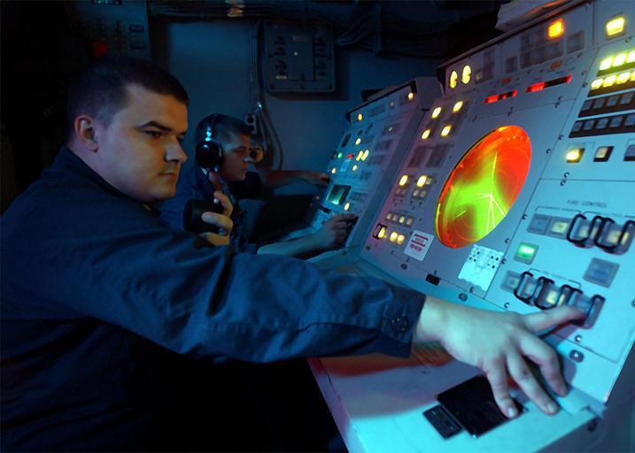 Keywords: US Navy 020904-N-7871M-001 Fire Controlmen man the firing officer console aboard USS George Washington (CVN 73).jpg en At sea aboard USS George Washington CVN 73 Sept 4 2002 -- Fire Controlmen 3rd Class Robert Mosby from Evansville Ind and Kasey Detmer from Lawrenceburg Ind man the firing officer console The console's mission is to visually display any and all incoming or outgoing missiles The Washington Battlegroup is on a regularly scheduled deployment in support of Operations Southern Watch and Enduring Freedom U S Navy photo by Photographer's Mate Airman Andrew Morrow RELEASED 2002-09-04 020904-N-7871M-001 Navy http //www navy mil/view_image asp id 2595 U S Navy photo by Photographer's Mate Airman Andrew Morrow PD-USGov-Military-Navy Aboard USS George Washington CVN-73 September 2002 photographs September 2002 in the United States Military people in 2002 Sailors at sea Men at work in the United States People using computers in the 2000s |