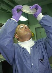 Keywords: US Navy 020913-N-3986D-001 Growing bacteria in a petri dish.jpg en At sea aboard USS George Washington CVN 73 Sep 13 2002 -- Hospital Corpsman 3rd Class Carlos Aguilar from Mexicali Mexico looks at bacterial growth on a petri dish in the ship's medical department Washington is homeported in Norfolk Va and is on a regularly scheduled deployment conducting combat missions in support of Operation Enduring Freedom U S Navy photo by Photographer's Mate Airman Jessica Davis RELEASED 2002-09-13 020913-N-3986D-001 Navy http //www navy mil/view_image asp id 2680 U S Navy photo by Photographer's Mate Airman Jessica Davis PD-USGov-Military-Navy Aboard USS George Washington CVN-73 September 2002 photographs September 2002 in the United States Military people in 2002 Personality rights |
