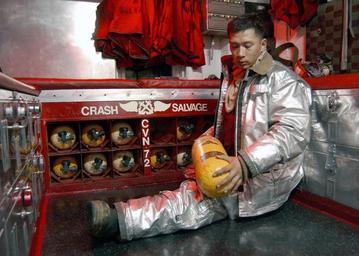 Keywords: US Navy 021111-N-5362F-001 Airman John Daudlee from Queens, N.Y., inspects his emergency gear on the flight deck.jpg en At sea aboard USS Abraham Lincoln CVN 72 Nov 11 2002 -- Airman John Daudlee from Queens N Y inspects his emergency gear on the flight deck Daudlee is a member of the Abraham Lincoln's Crash and Salvage Team The Lincoln and Carrier Air Wing Fourteen CVW-14 are on a regularly scheduled six-month deployment conducting combat combat missions in support of Operation Enduring Freedom and Operation Southern Watch U S Navy photo by Photographer's Mate Airman Bernardo Fuller RELEASED 2002-11-11 021111-N-5362F-001 Navy http //www navy mil/view_image asp id 3350 U S Navy photo by Photographer's Mate Airman Bernardo Fuller PD-USGov-Military-Navy November 2002 photographs Military people in 2002 November 2002 in the United States 11 November Aboard USS Abraham Lincoln CVN-72 Personality rights |