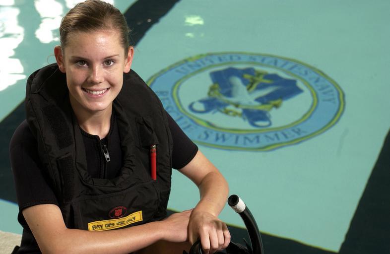 | Keywords: US Navy 021115-N-5862D-006 U.S. Navy rescue swimmer.jpg en Aboard Naval Air Station NAS Pensacola Nov 15 2002 -- Aviation Warfare Technician 3rd Class Cory Lawrence from Eugene Ore is a recent graduate from the Navy s Rescue Swimmer School conducted aboard NAS Pensacola Lawrence is one of only a handful of women to make it through the physically demanding four week course of instruction that trains enlisted aircrew personnel how to rescue and recover downed aviators and personnel who have fallen overboard at sea U S Navy photo by Chief Photographer s Mate Chris Desmond RELEASED 021115-N-5862D-006 Navy http //www navy mil/view_image asp id 3476 U S Navy photo by Chief Photographer s Mate Chris Desmond PD-USGov-Military-Navy Naval Air Station Pensacola Rescue swimmers |