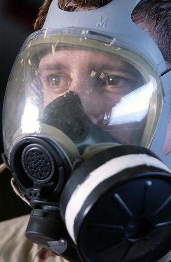 Keywords: US Navy 021130-N-4142G-035 wearing a MCU-2P gas mask.jpg en At sea aboard USS Constellation CV 64 Nov 30 2002 -- Machinist Mate 3rd Class Gerald Spohrer wears his MCU-2P gas mask during Chemical Biological and Radiological defense training with the Advanced Protective Chemical Garment APCG in the hangar bay of the USS Constellation Constellation is currently on a regularly scheduled six-month deployment conducting combat missions in support of Operation Enduring Freedom U S Navy photo by Photographer s Mate 2nd Class Felix Garza Jr RELEASED 2002-11-30 021130-N-4142G-035 Navy http //www navy mil/view_image asp id 3503 U S Navy photo by Photographer s Mate 2nd Class Felix Garza Jr PD-USGov-Military-Navy Aboard USS Constellation CV-64 Males wearing gas masks MCU-2/P Protective Mask Photographs by Felix Garza Jr |