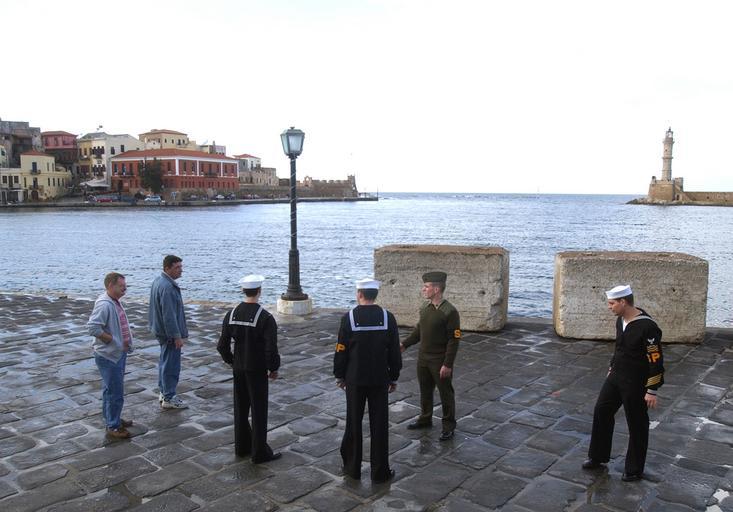 Keywords: US Navy 030101-N-0780F-002 Shore Patrol talk with Sailors.jpg en Souda Bay Crete Greece Jan 1 2003 -- Harry S Truman Shore Patrol talk with Sailors on New Year's Day in Chania's old Venetian harbor area during their holiday port visit to this eastern Mediterranean port Truman and her embarked Carrier Air Wing Three CVW-3 are on a regularly scheduled six-month deployment conducting combat missions in support of Operation Enduring Freedom U S Navy photo by Paul Farley RELEASED 2003-01-01 030101-N-0780F-002 Navy http //www navy mil/view_image asp id 3924 U S Navy photo by Paul Farley PD-USGov-Military-Navy Chania Old Harbour January 2003 photographs Military people in 2003 Street lights in Chania Military people in Chania 2003 in Chania 0101 January 2003 in Greece 01 |