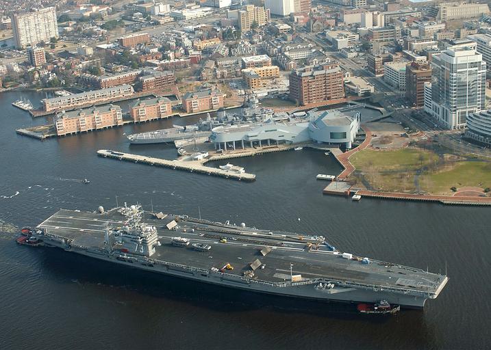 | Keywords: US Navy 030225-N-3653A-002 USS George Washington (CVN 73) passes by USS Wisconsin (BB 64).jpg en Norfolk Va Feb 25 2003 -- USS George Washington CVN 73 passes by the decommissioned battleship Wisconsin BB 64 in downtown Norfolk during her transit up the Elizabeth River from Norfolk Naval Station to Norfolk Naval Shipyard in Portsmouth Va U S Navy photo by Photographer's Mate 3rd Class Summer M Anderson RELEASED 2003-02-25 030225-N-3653A-002 Navy http //www navy mil/view_image asp id 4768 U S Navy photo by Photographer's Mate 3rd Class Summer M Anderson PD-USGov-Military-Navy General views of USS George Washington CVN-73 Battleship Wisconsin museum ship Nauticus Aerial photographs of Norfolk Virginia |