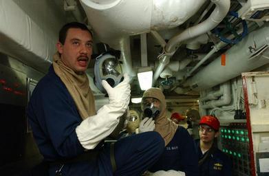 Keywords: US Navy 030227-N-6141B-003 Damage Controlman Fireman Apprentice Chad Forcht from St. George, Utah, instructs crewmembers on the proper use of the MCU-2P gas mask during a chemical, biological, and radiological training aboard t.jpg en Mediterranean Sea Feb 27 2003 -- Damage Controlman Fireman Apprentice Chad Forcht from St George Utah instructs crewmembers on the proper use of the MCU-2P gas mask during a chemical biological and radiological training aboard the guided missile cruiser USS Anzio CG 68 Anzio is on a deployment conducting missions in support of Operation Enduring Freedom U S Navy photo by Chief Journalist Alan J Baribeau RELEASED 2003-02-27 030227-N-6141B-003 Navy http //www navy mil/view_image asp id 4805 U S Navy photo by Chief Journalist Alan J Baribeau PD-USGov-Military-Navy Damage Controlman Aboard USS Anzio CG-68 MCU-2/P Protective Mask |