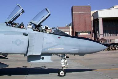 Keywords: US Navy 030303-N-9999R-001 removing the F-4 from their inventory.jpg en Cherry Point N C Mar 3 2003 -- U S Marine Corps Col John D Gumbel Executive Officer of Naval Air Systems Command Cherry Point waves from the backseat of an F-4 Phantom on the flight line Col Gumbel and test pilot Rich Bryant flew the aircraft to the Pacific Missile Test Center at Point Mugu Calif where the fighter jet will be used as a drone on the test range After 42 years of service the Marines are removing the F-4 from their inventory U S Navy photo by Gary Rice RELEASED 2003-03-03 030303-N-9999R-001 Navy http //www navy mil/view_image asp id 4949 U S Navy photo by Gary Rice PD-USGov-Military-Navy F-4S Phantom II Pacific Missile Test Center Point Mugu |