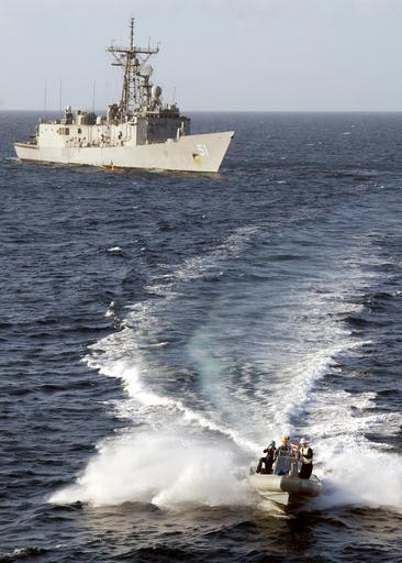 Keywords: US Navy 030306-N-7672K-001 USS Gary at sea in the Gulf of Aden.jpg en Gulf of Aden Mar 7 2003 -- A Rigid Hull Inflatable Boat RHIB makes a return trip from the frigate USS Gary FFG 51 to the amphibious command and control ship USS Mount Whitney LCC/JCC-20 after transferring two new crewmembers who were reporting for duty aboard the frigate Mount Whitney and embarked U S Marines are deployed to the Horn of Africa region to conduct missions in support of Operation Enduring Freedom and the continuing war on terrorism U S Navy photo by Photographer s Mate 2nd Class Kurtis Korwan RELEASED 2003-03-07 030306-N-7672K-001 Navy http //www navy mil/view_image asp id 4992 U S Navy photo by Photographer s Mate 2nd Class Kurtis Korwan PD-USGov-Military-Navy USS Gary FFG-51 Rigid-hulled inflatable boats of US Navy Aboard USS Mount Whitney LCC-20 |