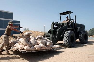 Keywords: US Navy 030310-N-5362A-005 A U.S. Navy Seabee attached to Amphibious Construction Battalion One (ACB-1) loads sand bags onto a forklift.jpg en Camp Patriot Kuwait Mar 10 2003 -- A U S Navy Seabee attached to Amphibious Construction Battalion One ACB-1 loads sand bags onto a forklift during efforts to build sand bunkers to fortify various locations throughout Camp Patriot Navy Seabees from Amphibious Construction Battalion One are currently forward deployed in support of Operation Enduring Freedom U S Navy photo by Photographer's Mate 1st Class Arlo K Abrahamson RELEASED 2003-03-10 030310-N-5362A-005 Navy http //www navy mil/view_image asp id 5124 U S Navy photo by Photographer's Mate 1st Class Arlo K Abrahamson PD-USGov-Military-Navy Camp Patriot Amphibious Construction Battalion 1 Military loaders Military life |