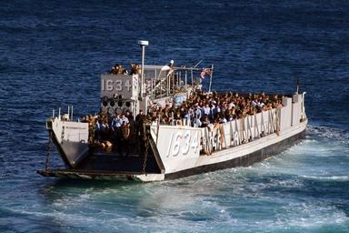 Keywords: US Navy 030311-N-0401E-001 A Landing Craft Utility (LCU), delivers Sailors and U.S. Marines from the Essex Amphibious Ready Group (ARG) to the island of Iwo Jima.jpg en Iwo Jima Japan Mar 3 2003 -- A Landing Craft Utility LCU delivers Sailors and U S Marines from the Essex Amphibious Ready Group ARG to the island of Iwo Jima The Essex ARG consisting of USS Essex LHD 2 USS Fort McHenry LSD 43 USS Harpers Ferry LSD 49 and USS Juneau LPD 10 are off the coast of Iwo Jima to participate in the 58th Anniversary Commemoration of the historic battle Iwo Jima was the largest sustained aerial offensive of the Pacific Campaign of World War II The U S sent over 110 000 Marines in 880 ships in what also became the largest invasion force of the Pacific Campaign It took 36 days of fighting and more than 25 000 U S casualties to break through and bring the island under American control Today's forward deployed Sailors from the Essex ARG and embarked Marines of the 31st Marine Expeditionary Unit Special Operations Capable continue to sail throughout the Pacific to help promote peace and stability in the region U S Navy photo by Journalist 2nd Class Wes Eplen RELEASED 2003-03-03 030311-N-0401E-001 Navy http //www navy mil/view_image asp id 5214 U S Navy photo by Journalist 2nd Class Wes Eplen PD-USGov-Military-Navy Images from US Navy location Iwo Jima Japan LCU 1634 ship 1968 Aboard USS Juneau LPD-10 Taken with Fujifilm FinePix S2 Pro ISO speed rating 200 |