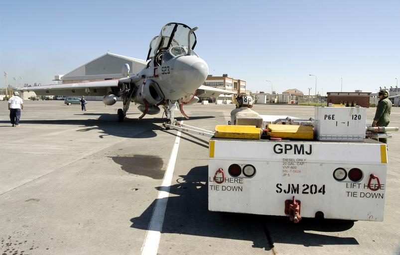 | Keywords: US Navy 030313-N-9693M-005 Members assigned to the ^ldquo,Gray Wolves^rdquo, of Electronic Attack Squadron One Four Two (VAQ-142) maneuver an EA-6B Prowler into position for a maintenance check.jpg en Naval Air Station Sigonella Sicily Mar 13 2003 -- Members assigned to the Gray Wolves of Electronic Attack Squadron One Four Two VAQ-142 maneuver an EA-6B Prowler into position for a maintenance check The Gray Wolves are returning to their home base at Naval Air Station Whidbey Island Wash following a deployment to Prince Sultan Air Base Saudi Arabia Naval Air Station Sigonella provides logistical support for Sixth Fleet and NATO forces in the Mediterranean Sea U S Navy photo by Photographer's Mate 2nd Class Damon J Moritz RELEASED 2003-03-13 030313-N-9693M-005 Navy http //www navy mil/view_image asp id 5139 U S Navy photo by Photographer's Mate 2nd Class Damon J Moritz Grumman EA-6 Prowler Electronic Attack Squadron 142 United States Navy Naval Air Station Sigonella PD-USGov-Military-Navy |