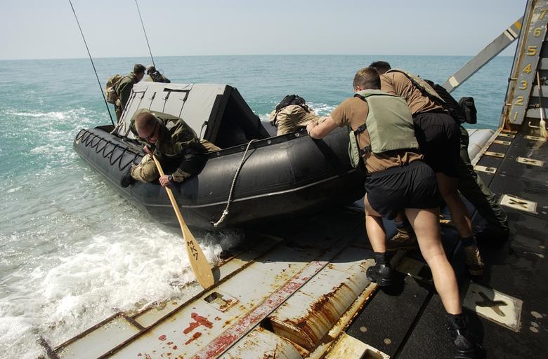 Keywords: US Navy 030317-N-5319A-011 Members of the Deep-Shallow Water Mark 7 crew from Commander Task Unit (CTU-55.4.3) push their dive boat off the well deck of the USS Gunston Hall (LSD 44).jpg en Central Command Area of Responsibility Mar 17 2003 -- Members of the Deep/Shallow Water Mark 7 crew from Commander Task Unit CTU-55 4 3 push their dive boat off the well deck of the USS Gunston Hall LSD 44 while transporting a Bottle Nose Dolphin operating in the Arabian Gulf CTU-55 4 3 is a multinational team consisting of Naval Special Clearance Team-One Fleet Diving Unit Three from the United Kingdom Clearance Dive Team from Australia and Explosive Ordnance Disposal Mobile Units Six and Eight EODMU-6 and EODMU-8 These units are conducting deep/shallow water mine counter measure operations to clear shipping lanes for humanitarian relief CTU-55 4 3 and USS Gunston Hall are currently forward deployed conducting missions in support of Operation Iraqi Freedom the multinational coalition effort to liberate the Iraqi people eliminate Iraq's weapons of mass destruction and end the regime of Saddam Hussein U S Navy photo by Photographer s Mate 1st Class Brien Aho RELEASED 2003-03-17 030317-N-5319A-011 Navy http //www navy mil/view_image asp id 5700 U S Navy photo by Photographer s Mate 1st Class Brien Aho PD-USGov-Military-Navy United States Navy images from Central Command Aboard USS Gunston Hall LSD-44 United States Navy Explosive Ordnance Disposal Well decks Explosive Ordnance Disposal Mobile Unit 6 Explosive Ordnance Disposal Mobile Unit 8 United States Naval Special Clearance Team One |