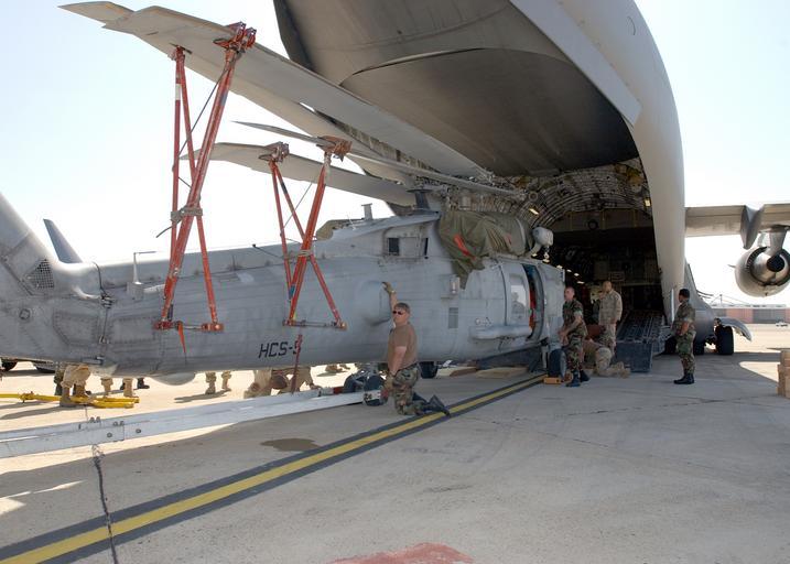 Keywords: US Navy 030321-N-0226M-002 An HH-60H Seahawk helicophter from Helicopter Combat Support Squadron Five (HC-5) is loaded into a U.S. Air Force C-17 Globemaster III aircraft.jpg en San Diego Calif Mar 21 2003 -- An HH-60H Seahawk helicopter from Helicopter Combat Support Squadron Five HC-5 is loaded into a U S Air Force C-17 Globemaster III aircraft The squadron's helicopters aircrew and ground support personnel are being transported to an undisclosed destination in the Northern Arabian Gulf U S Navy photo by Senior Chief Photographer's Mate Mahlon K Miller RELEASED 2003-03-21 030321-N-0226M-002 Navy http //www navy mil/view_image asp id 5477 U S Navy photo by Senior Chief Photographer's Mate Mahlon K Miller PD-USGov-Military-Navy Naval Air Station North Island in the 2000s HH-60H Rescue Hawk Transport of helicopters by Boeing C-17 Globemaster III