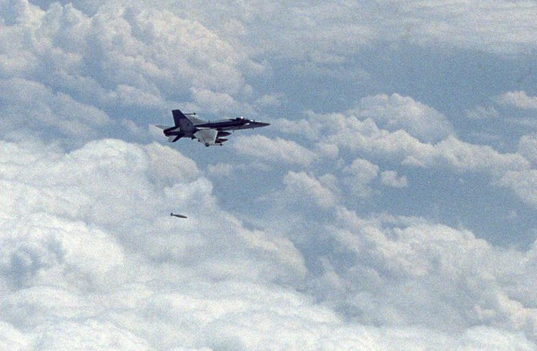 Keywords: US Navy 030327-N-0000X-003 An F-A-18 Hornet assigned to the Silver Eagles of Marine Fighter Attack Squadron One One Five (VMFA-115).jpg en Mediterranean Sea Mar 27 2003 -- An F/A-18 Hornet assigned to the Silver Eagles of Marine Fighter Attack Squadron One One Five VMFA-115 releases a Joint Direct Attack Munition JDAM over Iraq Truman and her embarked Carrier Air Wing Three CVW-3 are operating in support of Operation Iraqi Freedom Operation Iraqi Freedom is the multi-national coalition effort to liberate the Iraqi people eliminate Iraq s weapons of mass destruction and end the regime of Saddam Hussein U S Navy photo RELEASED 2003-03-27 030327-N-0000X-003 Navy http //www navy mil/view_image asp id 5889 U S Navy photo PD-USGov-Military-Navy Images from US Navy location Mediterranean Sea |