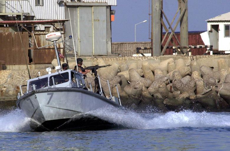 Keywords: US Navy 030401-N-5362A-017 A boat crew assigned to Inshore Boat Unit Fourteen (IBU-14) patrols the harbor in a 32-foot Kingston class jet boat.jpg en Port Shueiba Kuwait Apr 1 2003 -- A boat crew made up of crewmembers assigned to Inshore Boat Unit Fifteen IBU-15 and Inshore Boat Unit Seventeen IBU-17 patrols the harbor in a 27-foot Patrol Boat IBU-15 and IBU-17 are part the Naval Coastal Warfare Team forward deployed in support of Operation Iraqi Freedom Operation Iraqi Freedom is the multi-national coalition effort to liberate the Iraqi people eliminate Iraq s weapons of mass destruction and end the regime of Saddam Hussein U S Navy photo by Photographer's Mate 1st Class Arlo K Abrahamson RELEASED 2003-04-01 030401-N-5362A-017 Navy http //www navy mil/view_image asp id 6211 U S Navy photo by Photographer's Mate 1st Class Arlo K Abrahamson PD-USGov-Military-Navy United States Navy in Ash Shuaybah Kuwait Inshore Boat Units |