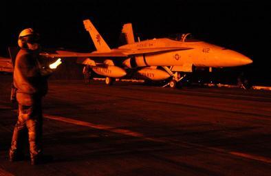 Keywords: US Navy 030407-N-4560C-503 An F-A-18C Hornet prepares to launch from the flight deck aboard USS Theodore Roosevelt (CVN 71).jpg en The Mediterranean Sea Apr 7 2003 -- An F/A-18C Hornet assigned to the War Party of Strike Fighter Squadron Eighty Seven VFA-87 prepares to launch from the flight deck aboard USS Theodore Roosevelt CVN 71 Roosevelt and Carrier Air Wing Eight CVW-8 are deployed conducting missions in support of Operation Iraqi Freedom Operation Iraqi Freedom is the multi-national coalition effort to liberate the Iraqi people eliminate Iraq's weapons of mass destruction and end the regime of Saddam Hussein U S Navy photo by Photographer's Mate Airman Apprentice Jeffery Carl RELEASED 2003-04-07 030407-N-4560C-503 Navy http //www navy mil/view_image asp id 6387 U S Navy photo by Photographer's Mate Airman Apprentice Jeffery Carl PD-USGov-Military-Navy USS Theodore Roosevelt CVN-71 flight deck |