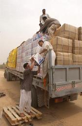 | Keywords: US Navy 030408-N-5362A-004 Iraqi volunteers from the city of Najaf work with Kuwaiti volunteers to help unload water for Iraqi citizens in need.jpg en Near Al Najaf Iraq April 08 2003 -- Iraqi volunteers from the city of Najaf work with Kuwaiti volunteers to help unload water for Iraqi citizens in need The U S military is working with international relief organizations to help provide food and medicine for the Iraqi people in support of Operation Iraqi Freedom Operation Iraqi Freedom is the multinational coalition effort to liberate the Iraqi people eliminate Iraq's weapons of mass destruction and end the regime of Saddam Hussein U S Navy photo by Photographer's Mate 1st Class Arlo K Abrahamson RELEASED 2003-04-08 030408-N-5362A-004 Navy http //www navy mil/view_image asp id 6520 U S Navy photo by Photographer's Mate 1st Class Arlo K Abrahamson PD-USGov-Military-Navy Najaf Humanitarian aid in Iraq |